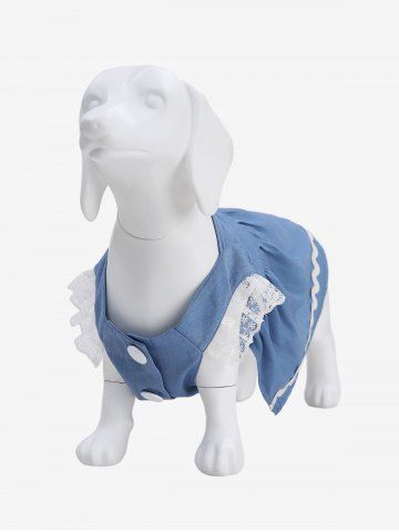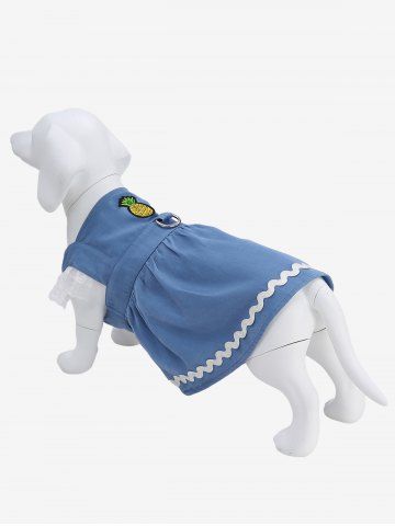 Pet's Pineapple Lace Trim Appliques Buttons Dress - Blue - Xl