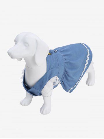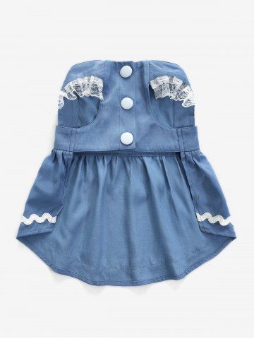 Pet's Pineapple Lace Trim Appliques Buttons Dress - Blue - 3xl
