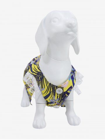 Dog Dresses > Pet's Tropical Leaf Flowers Print Lace Trim Hawaii Top
