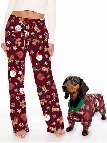 Pet's Christmas Santa Claus Snowflake Gingerbread Candy Print Button Pajama - Red - Xl