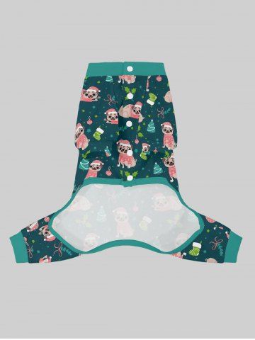 Pet's Christmas Tree Ball Stocking Hat Dog Print Button Pajama - Deep Green - L