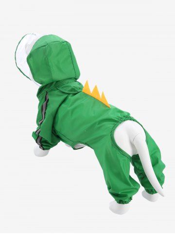 Pet's Reflective Patchwork Waterproof Buttons Dinosaur Pattern Hooded Raincoat - Green - M