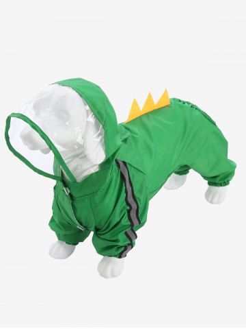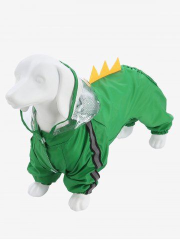 Pet's Reflective Patchwork Waterproof Buttons Dinosaur Pattern Hooded Raincoat - Green - Xl