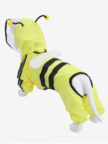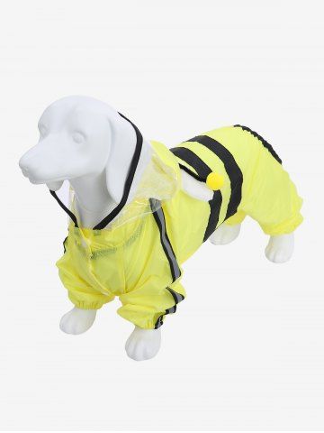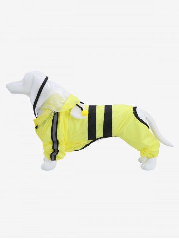 Pet's Reflective Trim Striped Patchwork Bee Pattern Button Wing Waterproof Raincoat - Yellow - 2xl