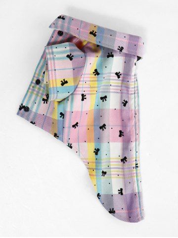 Pet's Candy Color Plaid Bowknot Polka Dot Print Toggle Drawstring Button Shirt - Multi-f - 2xl