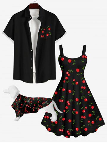 Pet's Cherry Print Button Shirt - Black - 2xl