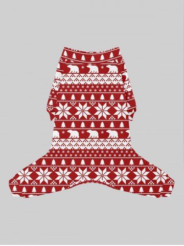 Pet's Christmas Tree Polar Bear Snowflake Print Pajama - Red - L