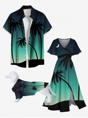 Dog Shirts > Pet's Coconut Tree Beach Ombre Galaxy Print Hawaii Button Shirt
