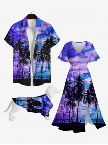 Coconut Tree Cloud Sea Print Hawaii Dog And Owner Matching Outfits
