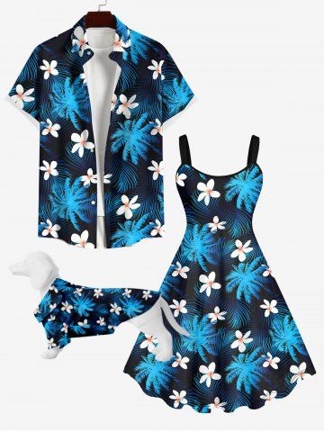 Pet's Coconut Tree Floral Print Hawaii Button Shirt - Black - 2xl
