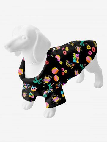 Pet's Coconut Tree Floral Sun Letters Print Hawaii Button Shirt - Black - 2xl
