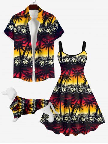 Pet's Coconut Tree Flower Ombre Print Buttons Hawaii Shirt - Black - L