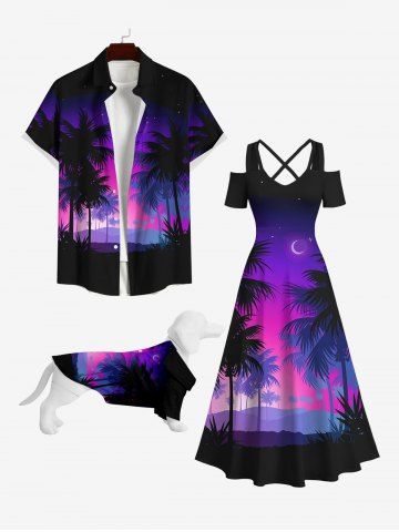 Dog Shirts > Pet's Coconut Tree Ombre Galaxy Print Hawaii Shirt