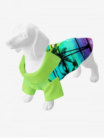 Pet's Coconut Tree Ombre Sea Print Hawaii Button Shirt - Green - S