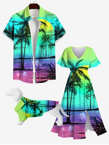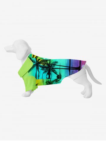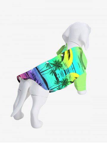 Pet's Coconut Tree Ombre Sea Print Hawaii Button Shirt - Green - M