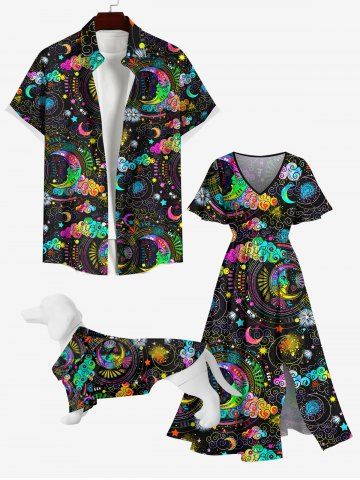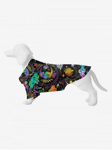 Pet's Colorful Cloud Moon Star Galaxy Print Button Shirt - Black - Xl