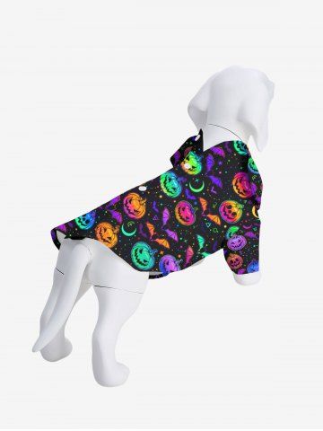 Pet's Colorful Pumpkin Bat Star Print Halloween Shirt - Black - S