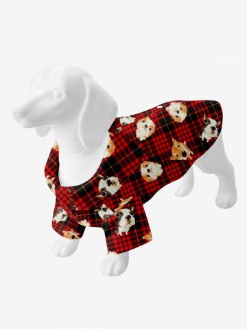 Pet's Cute Dog Plaid Print Button Shirt - Red - M