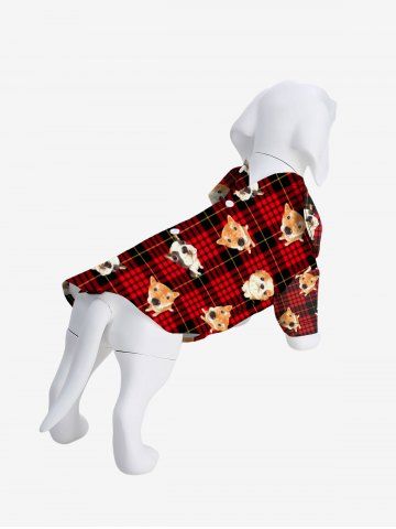 Pet's Cute Dog Plaid Print Button Shirt - Red - 2xl