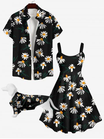 Pet's Daisy Flower Leaf Print Hawaii Shirt - Black - M
