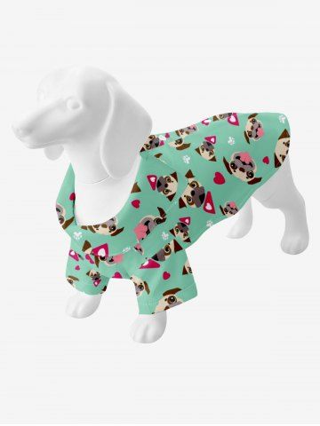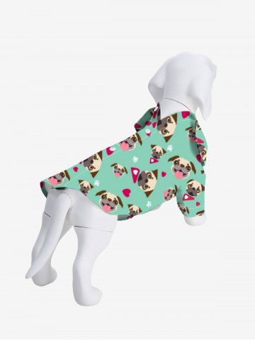 Pet's Dog Paw Heart Print Button Shirt - Green - Xl