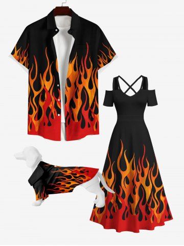 Pet's Fire Flame Print Shirt - Black - 2xl