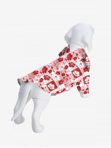Pet's Floral Plaid Print Hawaii Button Shirt - Red - M