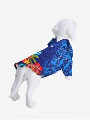 Pet's Floral Tropical Leaves Printd Hawaii Button Shirt - Blue - M