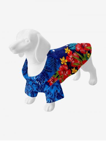 Pet's Floral Tropical Leaves Printd Hawaii Button Shirt - Blue - L