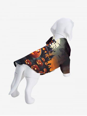 Pet's Halloween Pumpkin Bat Tree Print Shirt - Black - M