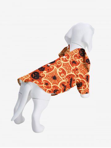 Pet's Halloween Spider Web Pumpkin Moon Print Shirt - Orange - Xl