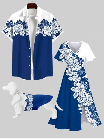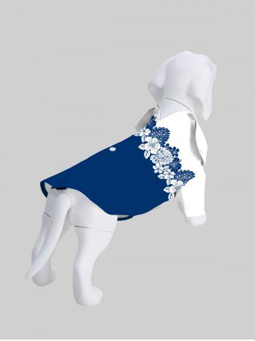Pet's Hibiscus Flowers Palm Leaf Print Hawaii Shirt - Blue - S