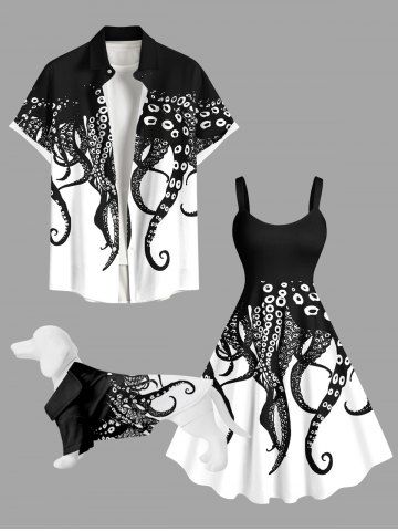 Pet's Octopus Two Tone Print Hawaii Button Shirt - Black - Xl
