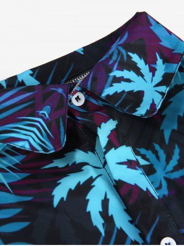 Pet's Ombre Coconut Tree Print Buttons Hawaii Shirt - Black - Xl