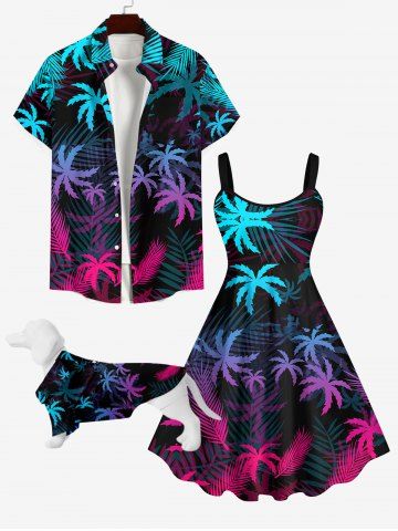 Pet's Ombre Coconut Tree Print Buttons Hawaii Shirt - Black - 2xl