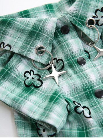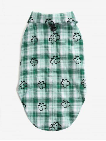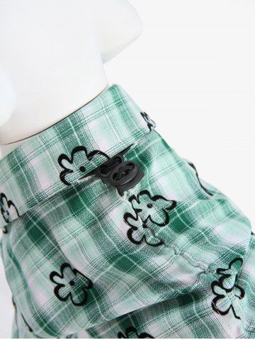 Pet's Plaid Floral Print Toggle Drawstring O-Ring Stars Button Shirt - Light Green - 2xl