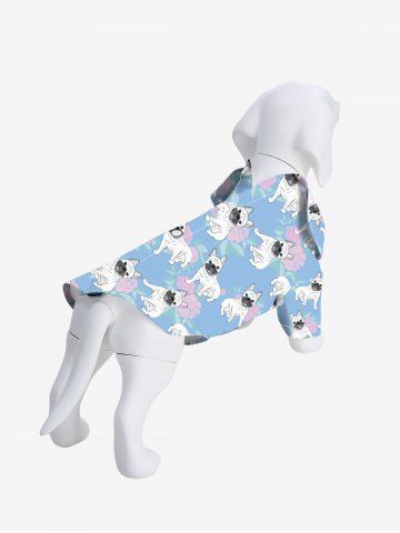 Pet's Rose Flower Leaf Dog Print Shirt - Light Blue - L
