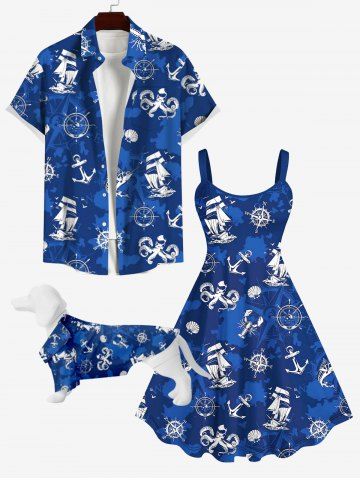 Dog Shirts > Pet's Sailboat Lobster Anchor Shell Octopus Print Button Shirt