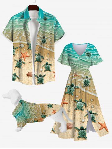 Pet's Sea Creatures Shell Turtle Waves Print Hawaii Shirt - Multi-a - M