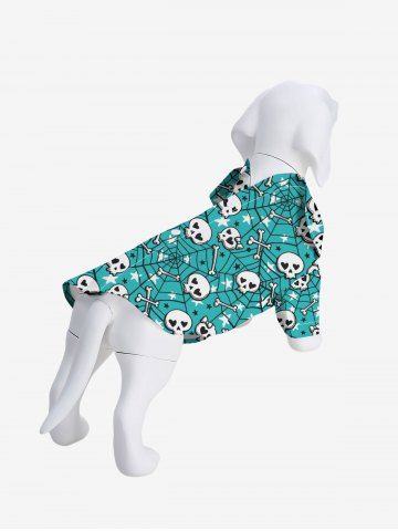 Pet's Skull Bone Spider Web Stars Print Button Shirt - Green - Xl
