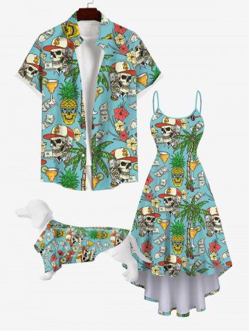 Dog Shirts > Pet's Skull Pineapple Coconut Tree Floral Currency Print Hawaii Button Shirt