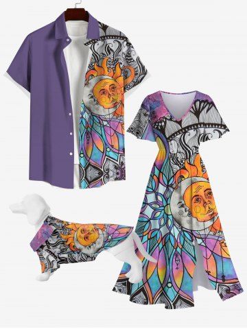Pet's Sun Moon Ombre Vintage Floral Print Button Shirt - Multi-a - 2xl