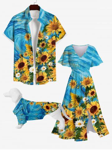 Dog Shirts > Pet's Sunflowre Daisy Spiral Painting Print Hawaii Button Shirt