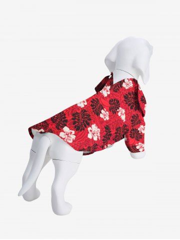 Pet's Tropical Flowers Palm Tree Leaf Print Hawaii Shirt - Red - Xl