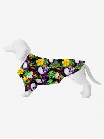 Dog Shirts > Pet's Tropical Leaf Flowers Skulls Print Hawaii Shirt