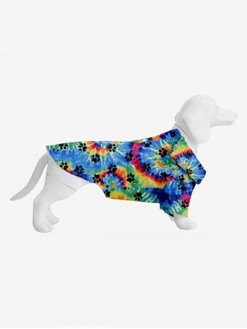 Pet's Turn-down Collar Colorful Spiral Tie Dye Cat Paw Print Hawaii Button Shirt - Multi-a - S