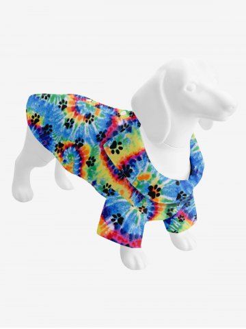 Dog Shirts > Pet's Turn-down Collar Colorful Spiral Tie Dye Cat Paw Print Hawaii Button Shirt