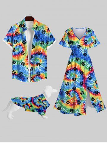 Dog Shirts > Pet's Turn-down Collar Colorful Spiral Tie Dye Cat Paw Print Hawaii Button Shirt