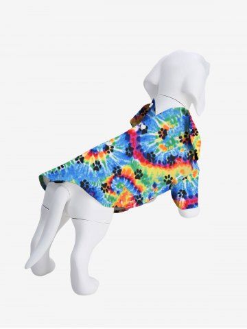 Pet's Turn-down Collar Colorful Spiral Tie Dye Cat Paw Print Hawaii Button Shirt - Multi-a - L