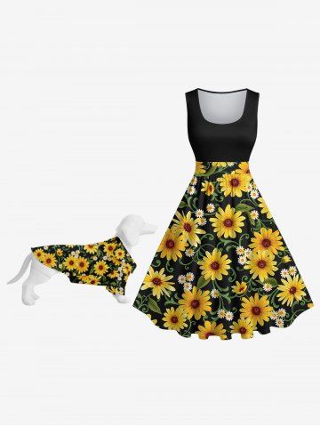 Pet's Turn-down Collar Daisy Flower Leaf Print Button Shirt - Black - S